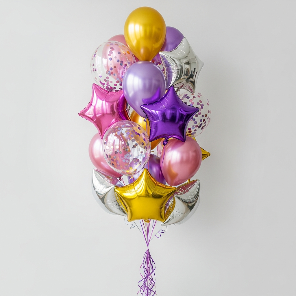 Classic balloon bouquet with a mix of chrome and confetti balloons. Perfect for any celebration.